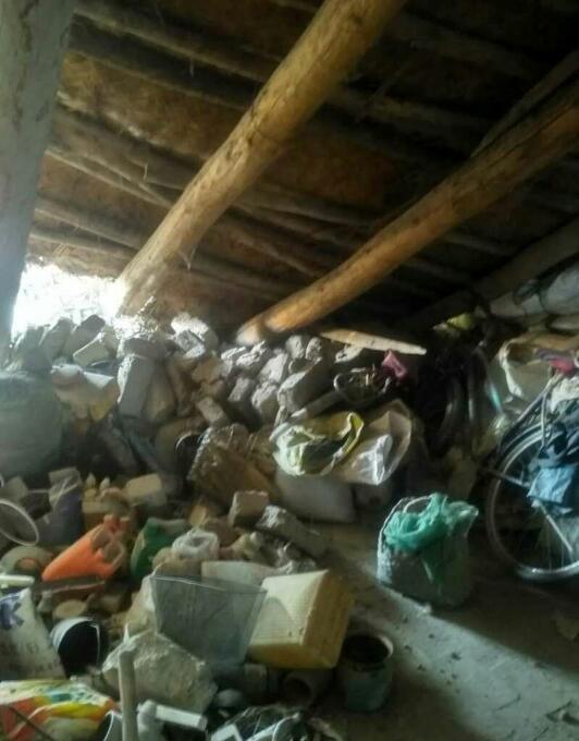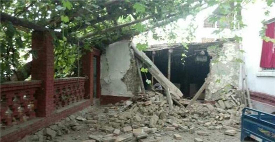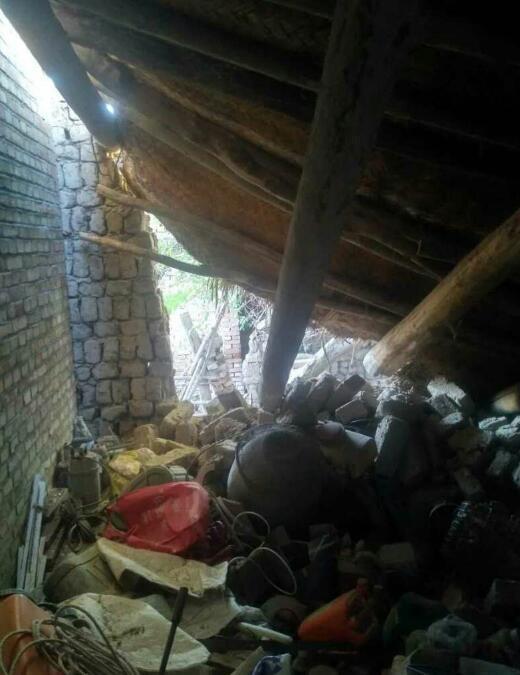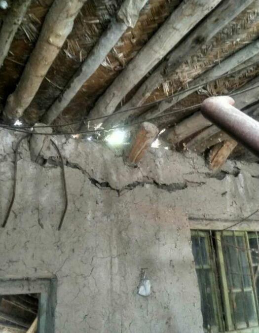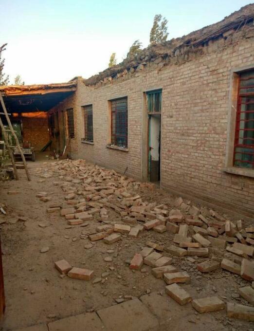 精河县大河沿子镇拜尔盖斯村灾情图片。老旧房屋有垮塌、裂缝现象。